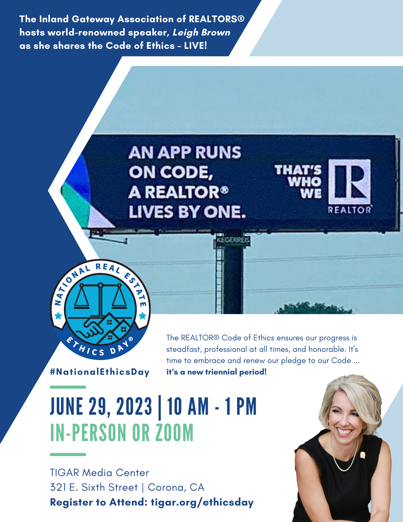 June 29th is #NationalEthicsDay, and we’re bringing it to our members live! 🎉 Renowned speaker and real estate veteran, Leigh Brown will cover all 17 articles of the Code of Ethics in a fun and engaging way, with case studies and expert insights. 🙌 Don't miss out on this amazing opportunity to fulfill your NAR Code of Ethics requirement, improve real estate professionalism and grow your businesses!